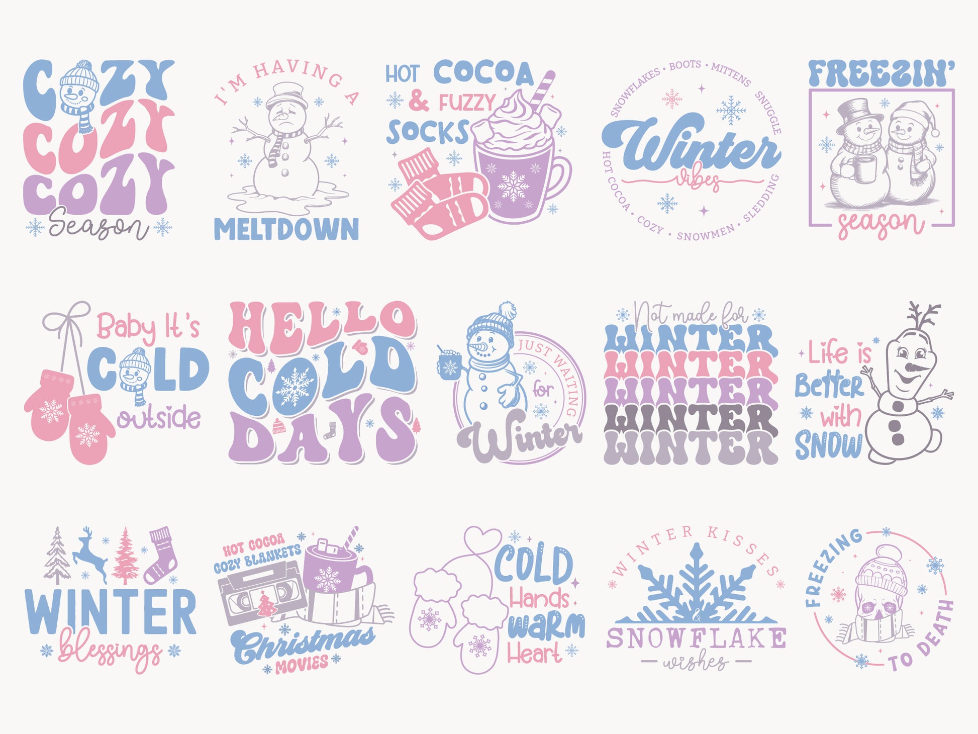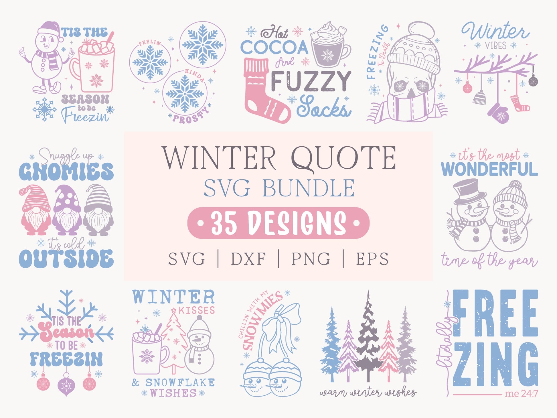 Purchase our versatile Winter SVG Bundle, packed with 35 high-quality and cozy designs perfect for printing t-shirts, mugs, blankets, signs, totes, sweatshirts, and more. Each design in the bundle embodies the essence of the season from whimsical snowflakes to festive sayings, making it easy to add a unique winter touch to your holiday projects. Ideal for DIY enthusiasts and small businesses, this Winter SVG Bundle provides versatile, high-quality files ready for use with Cricut, Silhouette, Vinyl, and other cutting machines. Let this bundle inspire your winter creativity, helping you make heartwarming gifts and cozy decor all season long! Take a look now.