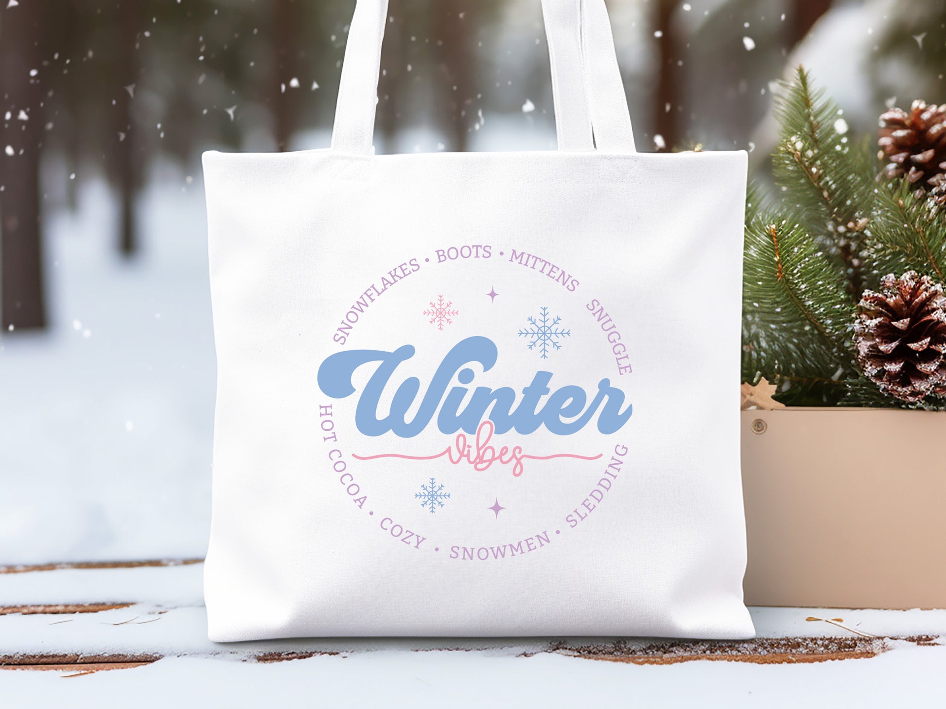 Discover our Winter Vibes SVG Cutting File, featuring the words "vibes," "snowflakes," "boots," "mittens," "snuggle," "hot cocoa," "cozy," "snowmen," and "sledding." Perfect for DIY projects, this versatile SVG design captures the charm of winter, making it ideal for creating apparel, home decor, mugs, and holiday gifts. Whether you're crafting with Cricut, Silhouette, or other cutting machines, the Winter SVG Cutting File is smooth, clean line will ensure high-quality results every time. Add a touch of warmth to the chilly season with this "Winter Vibes" design, and give your projects a festive and inviting feel. Perfect for craft enthusiasts, holiday markets, and winter decor collections alike! Shop now.