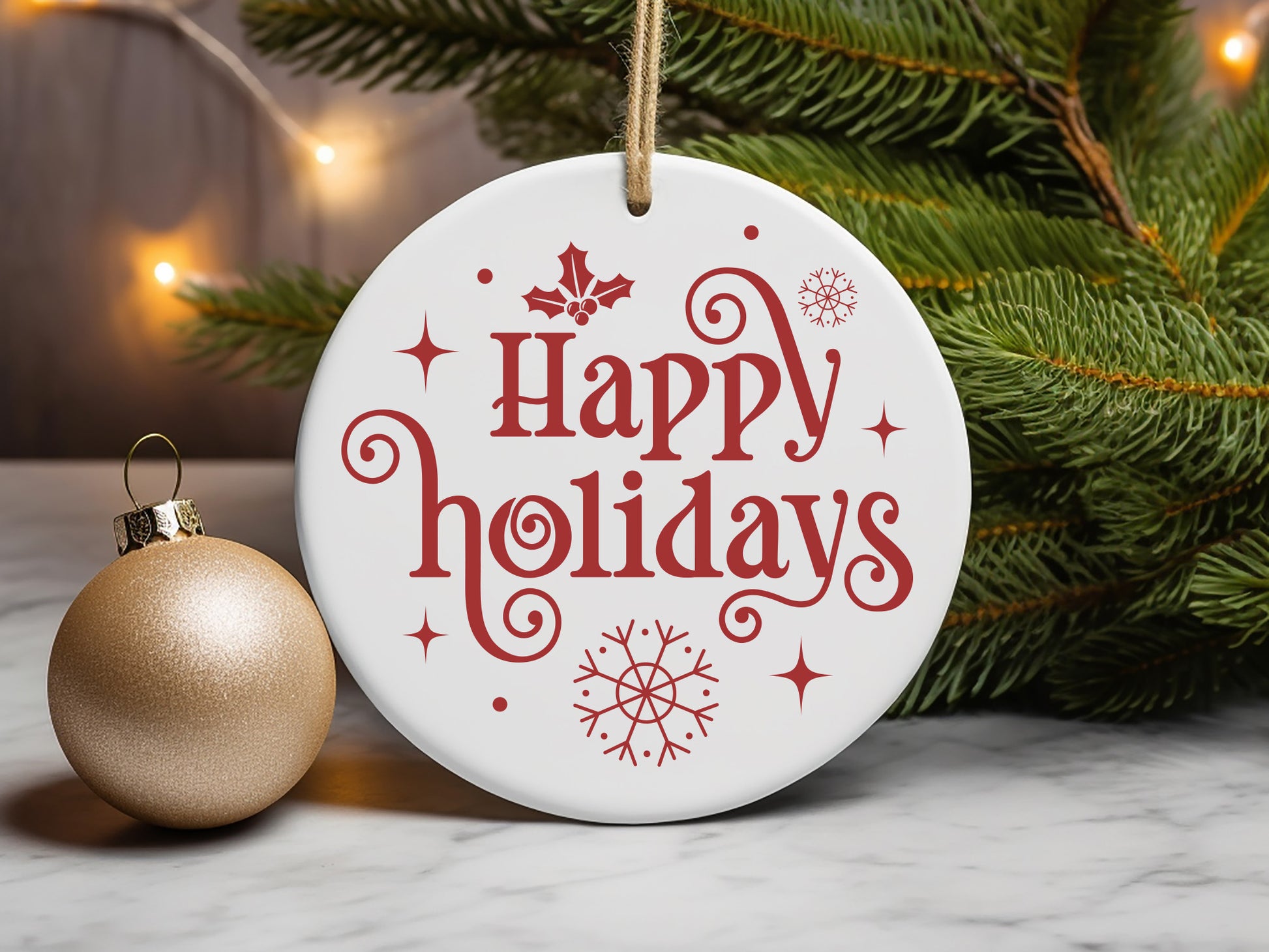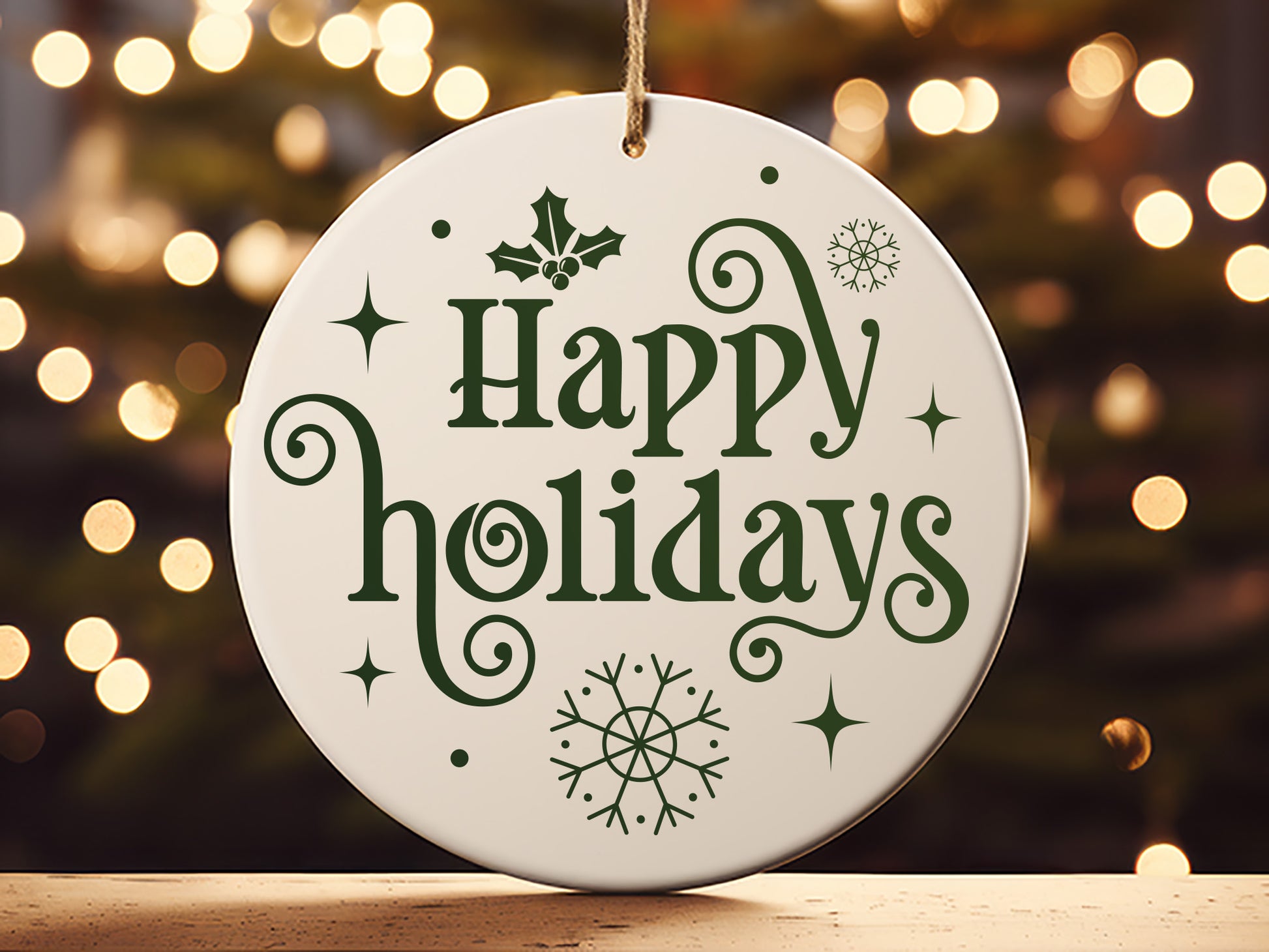 Discover the "Wooden Christmas Ornament SVG - Happy Holidays" design, versatile SVG file perfect for crafting rustic wooden ornaments that bring a warm, nostalgic feel to your Christmas tree. With its elegant "Happy Holidays" phrase along with snowflakes, a decorative swirl, and holly berries, this Wooden Christmas Ornament SVG design is ideal for creating personalized ornaments, thoughtful gifts, or unique holiday decorations. Compatible with laser cutters, CNC routers, Cricut, Silhouette, and other machines. It makes it easy to add a handcrafted, festive touch to your home or gifting this season! Get now and create unique holiday decor.