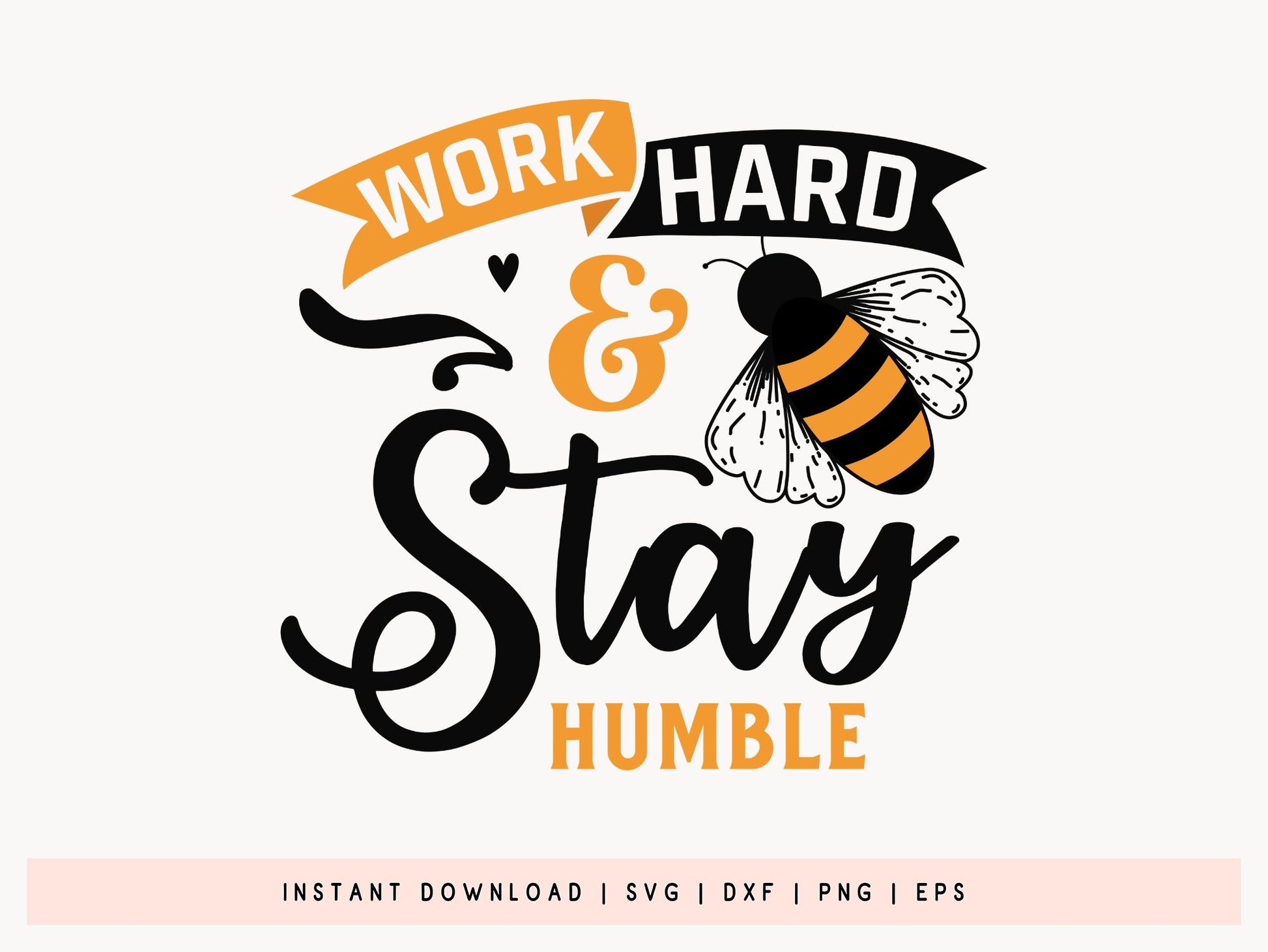 Browse our inspirational Work Hard and Stay Humble - Cute Bee SVG design. It's perfect for crafters who appreciate motivational quotes with a fun twist. This charming Cute Bee SVG adds a delightful touch to any project. Whether you're making shirts, mugs, tote bags, or wall art, the Cute Bee SVG brings a buzz of positivity to your DIY crafts. Fully customizable and super easy to use, this design is available in SVG, DXF, PNG, and EPS formats. Our Cute Bee SVG is compatible with Cricut, Silhouette, and other cutting machines. If you're a beginner or a seasoned crafter, the Cute Bee SVG is fantastic for gifts, decor, or even classroom displays.
