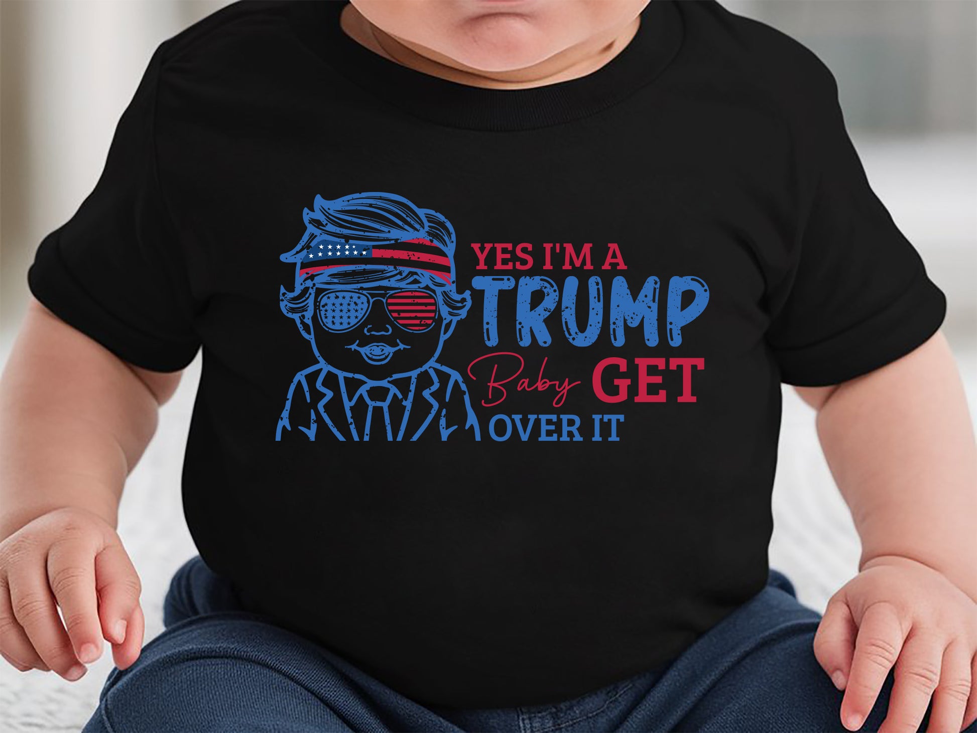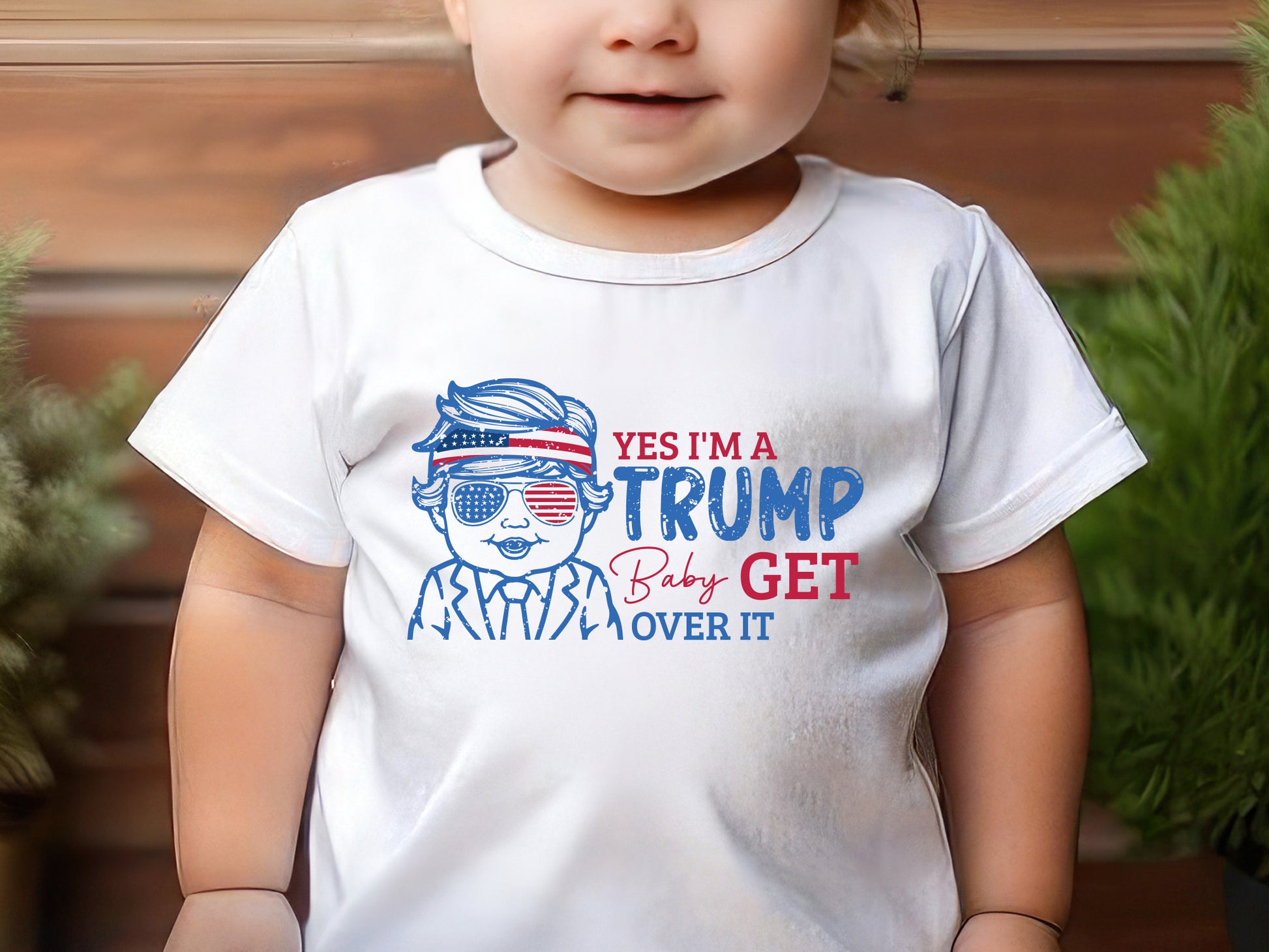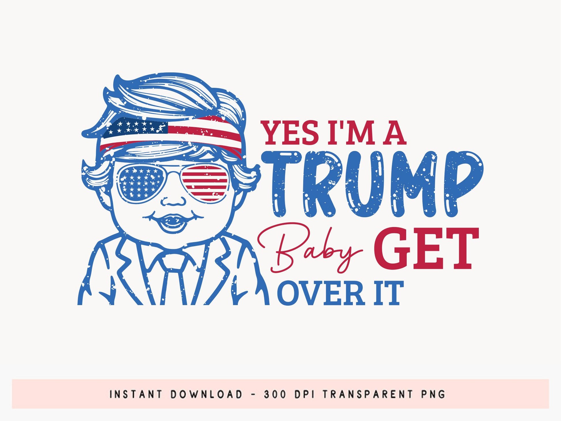 Presenting the unique Yes I'm A Trump Baby Get Over It sublimation PNG design, a vibrant and bold graphic including a playful quote that expresses pride in being a Trump supporter. Perfect for creating shirts, mugs, toddlers, tote bags, or more, this "Yes I'm A Trump Baby Get Over It" design is ideal for those who want to showcase their political stance with humor and style. Whether you're attending rallies, family gatherings, or casual outings, the design makes a fun statement. Embrace your identity and let everyone know where you stand with this eye-catching Trump PNG Sublimation, perfect for all your creative projects! Grab now.